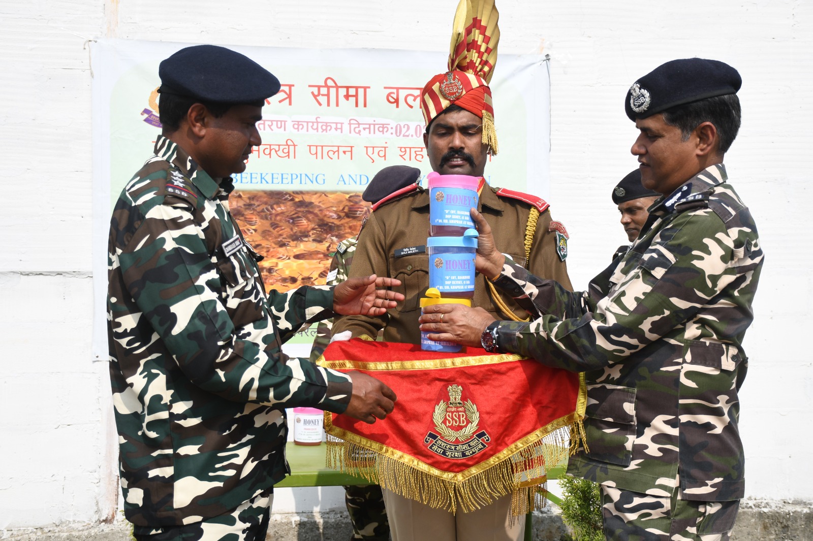 8वीं वाहिनीं सशस्त्र सीमा बल खपरैल द्वारा राष्ट्रीय मधुमक्खी पालन एवं शहद मिशन के तहत उत्पादित शहद को जवानों के खाने के लिए वितरण किया गया