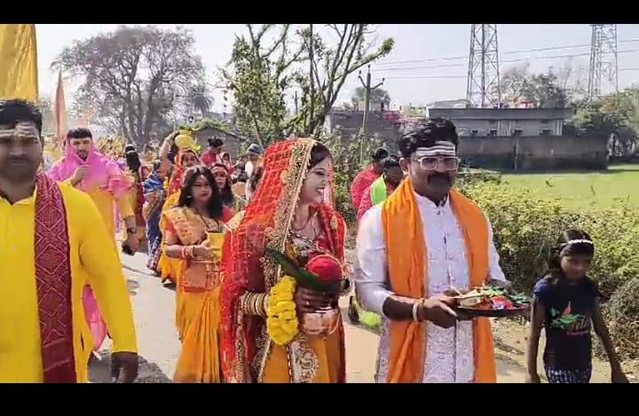 पार्वती प्रतिमा स्थापना को लेकर भव्य कलश शोभायात्रा निकाला गया चारों ओर भक्तिमय माहौल देखा गया।