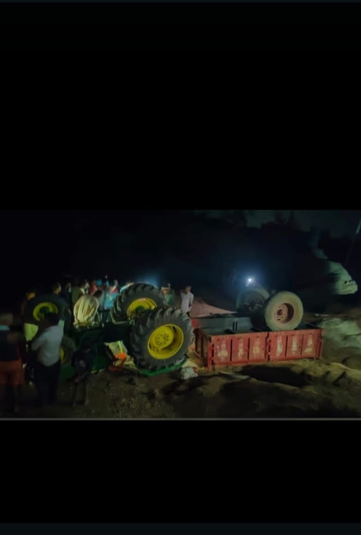 चिल्हाटी में ट्रैक्टर पलटने से चालक की मौत, दो घायल