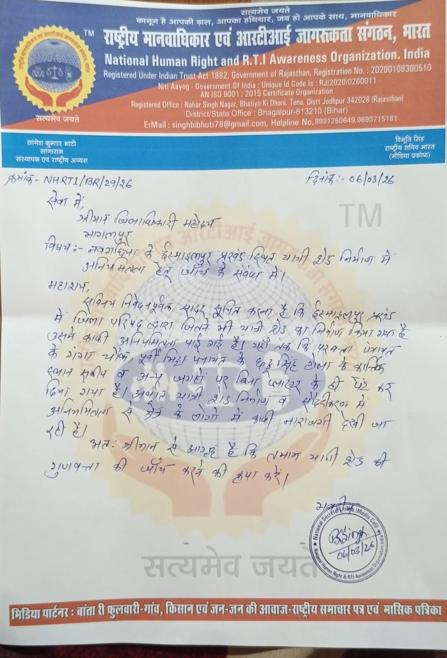 कार्य में अनियमितता हेतू जांच की मांग को लेकर मानवाधिकार संगठन ने जिलाधिकारी को सौंपा ज्ञापन