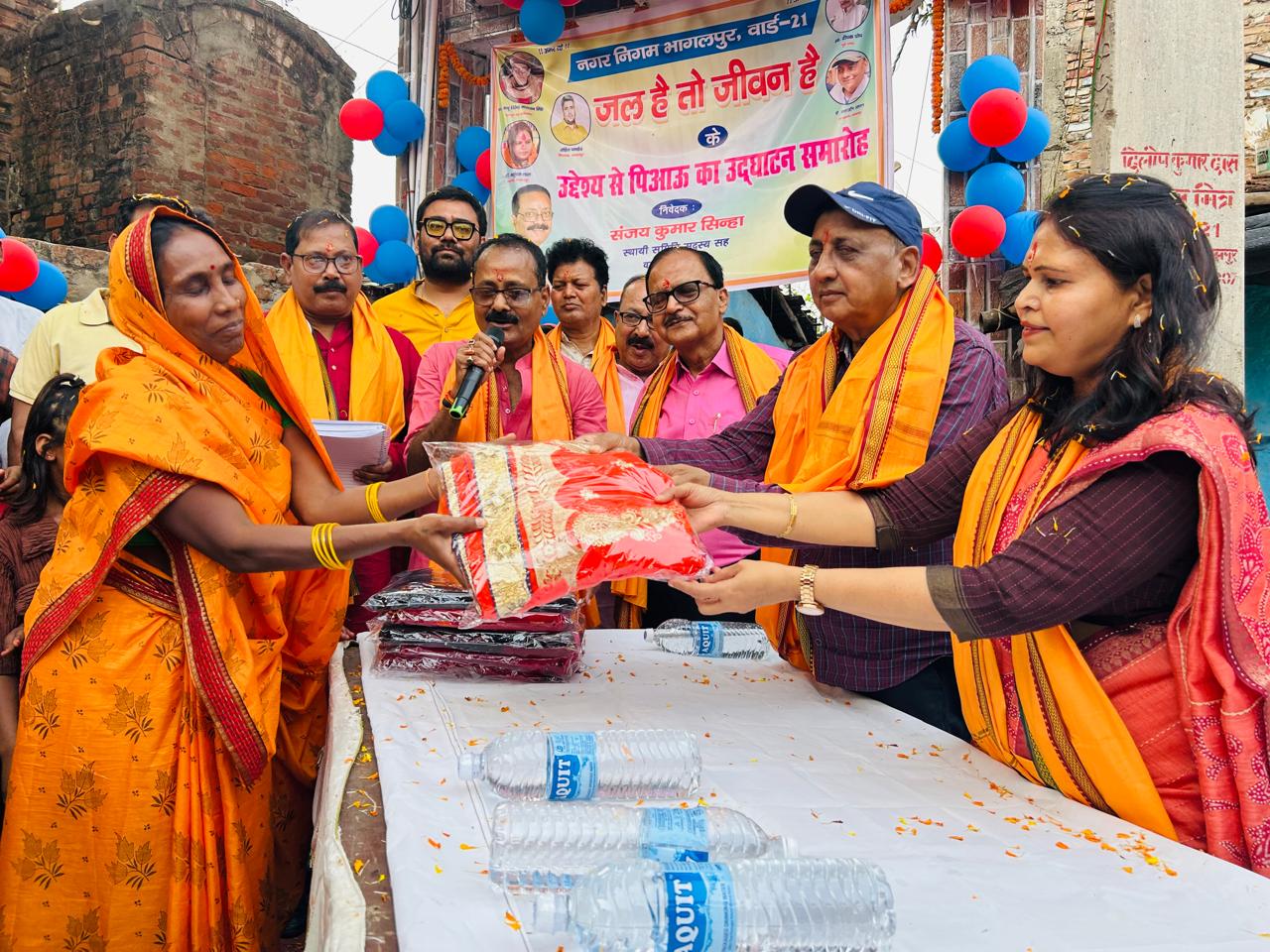 भागलपुर की महापौर महोदया ने किया पियाऊ का उद्घाटन; महिला दिवस पर स्लम क्षेत्र में हुआ वस्त्र वितरण