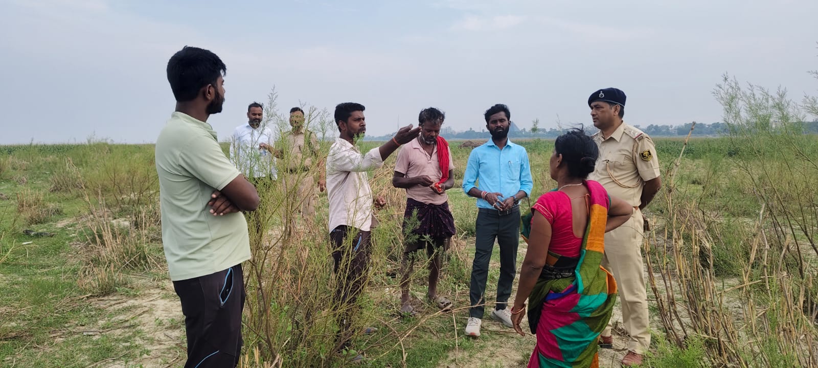 दियारा क्षेत्र में किसानों का फसल का मुआयना करते बरारी पंचायत के मुखिया और थाना अध्यक्ष।