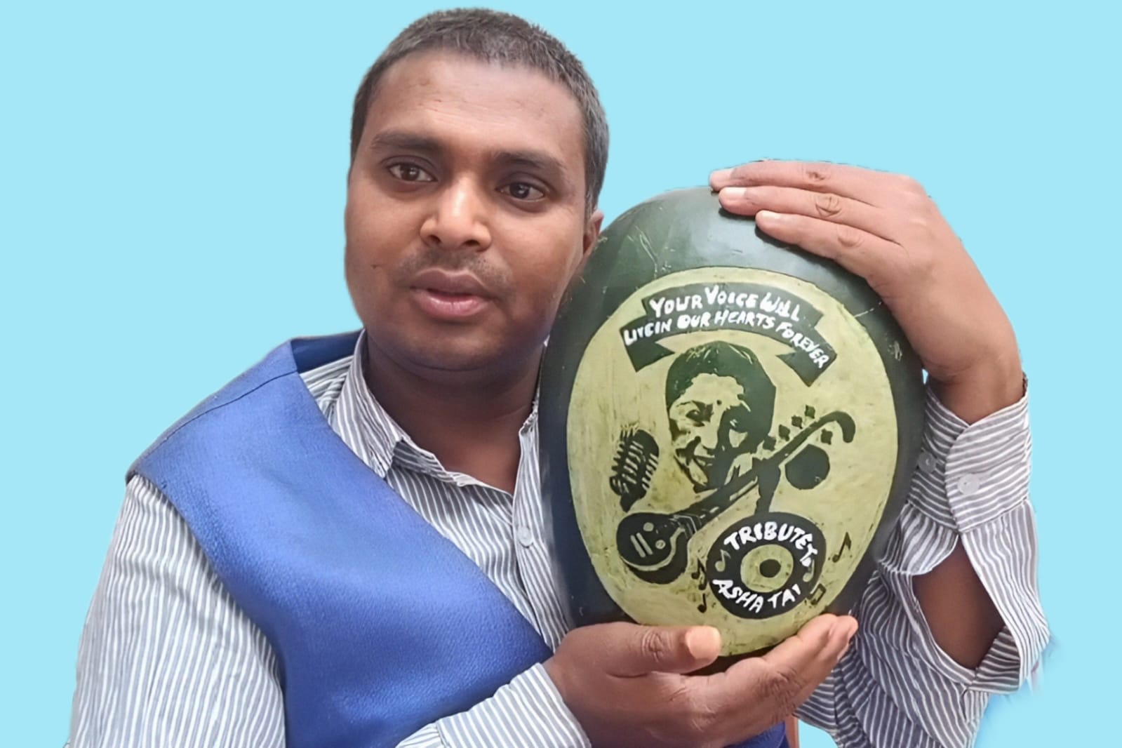तरबूज पर उकेरी गई अमर सुरों की विरासत: अंतरराष्ट्रीय सैंड आर्टिस्ट मधुरेंद्र ने आशा ताई को दी अनोखी श्रद्धांजलि