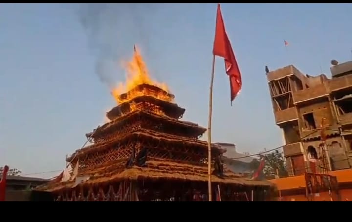 भागलपुर में चंडी महायज्ञ पंडाल में भीषण आग, यज्ञ मंडप जलकर खाक।
