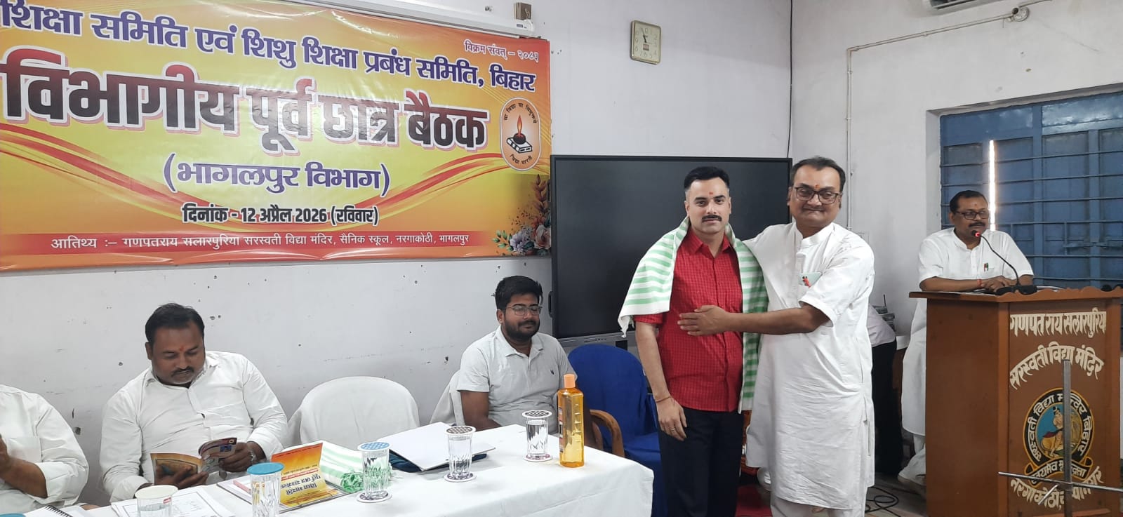 भागलपुर के भारती शिक्षा समिति एवं शिशु शिक्षा प्रबंध समिति के तत्वावधान में आयोजित सैनिक स्कूल गणपतराय सलारपुरिया सरस्वती विद्या मंदिर नरगाकोठी चंपानगर भागलपुर में भागलपुर विभाग के पूर्व छात्र संयोजक एवं सह संयोजक बैठक संपन्न हुआ। कार्यक्रम का प्रारंभ प्रांतीय पूर्व छात्र संयोजक अनुराग महाराणा ,पूर्व छात्र सह संयोजक अभिषेक पांडे, जिला निरीक्षक भागलपुर विभाग सतीश कुमार सिंह, प्रधानाचार्य अमरेश कुमार, प्रभारी प्रधानाचार्य ममता जायसवाल, पूर्व छात्र चमन झा, पूर्व छात्र अमित राम ने संयुक्त रूप से दीप प्रज्वलित कर किया।