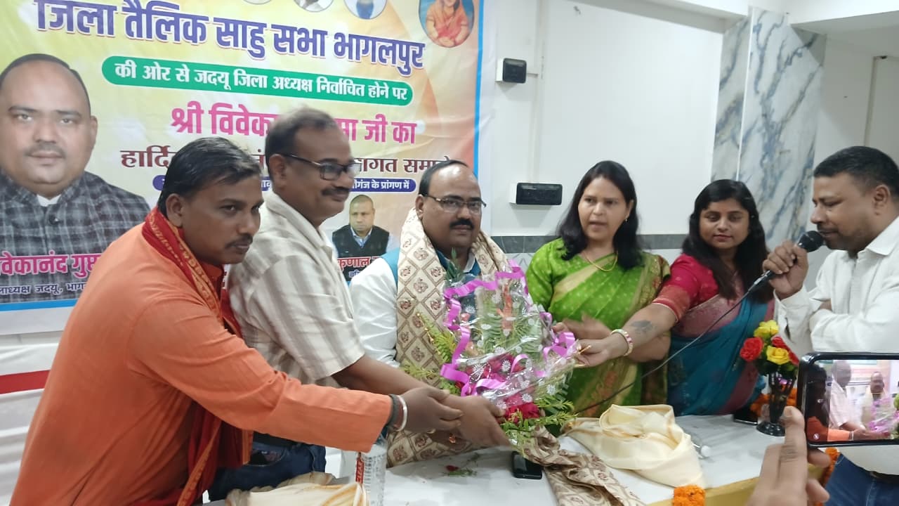 भागलपुर जिला तैलिक साहु सभा की ओर से अलीगंज स्थित राधाकृष्णन ठाकुरबाड़ी में अभिनंदन सह स्वागत समारोह का आयोजन किया गया