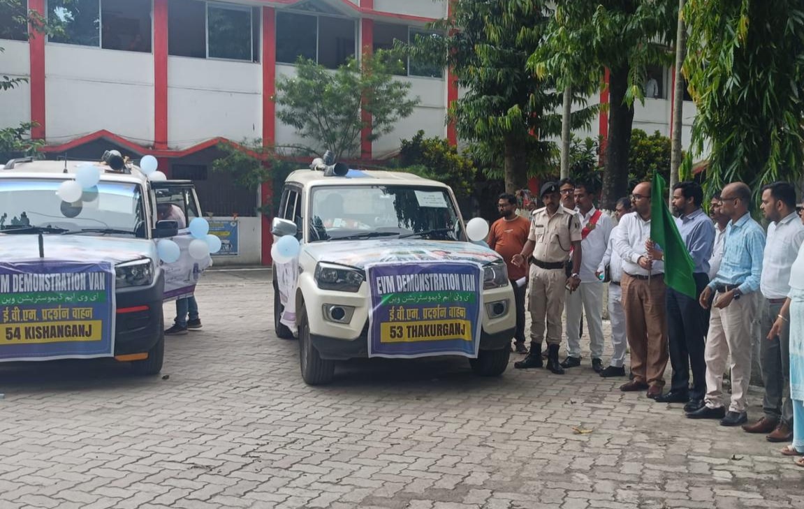 किशनगंज,  चुनाव को ध्यान में रखते हुए मतदाताओं को ईवीएम (इलेक्ट्रॉनिक वोटिंग मशीन) और वीवीपैट (वोटर वेरीफाएबल पेपर ऑडिट ट्रेल) के प्रयोग की जानकारी देने के उद्देश्य से सोमवार को जिला निर्वाचन पदाधिकारी द्वारा मोबाइल डेमोंस्ट्रेशन वैन को जिला मुख्यालय से हरी झंडी दिखाकर रवाना किया गया।
