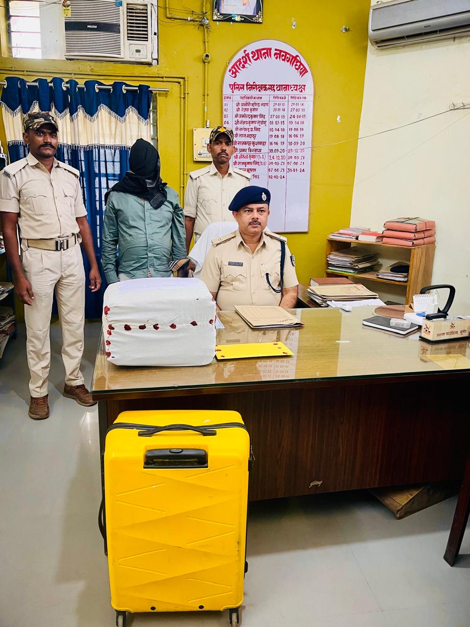 पुलिस अधीक्षक नवगछिया के निर्देश पर आगामी बिहार विधानसभा चुनाव 2025 और पर्व-त्योहार को ध्यान में रखते हुए अवैध मादक पदार्थ एवं आग्नेयास्त्र के विरुद्ध अभियान लगातार जारी है। इसी क्रम में दिनांक 09.10.25 को नवगछिया थाना टीम ने वाहन जाँच के दौरान 01 संदिग्ध व्यक्ति को रोककर तलाशी ली। तलाशी के दौरान उसके पास मौजूद ट्रॉली बैग से 10 पैकेट में कुल 9.9 किलोग्राम गांजा बरामद किया गया। आरोपी को गिरफ्तार कर लिया गया।