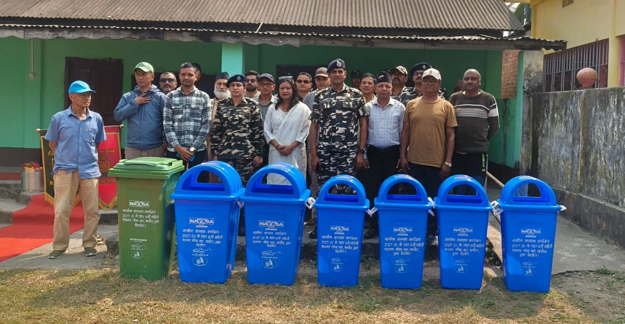 गलगलिया — सशस्त्र सीमा बल (एसएसबी) 8वीं वाहिनी की ओर से सीमावर्ती क्षेत्र के ग्रामीणों के भलाई के लिए नागरिक कल्याण कार्यक्रम वर्ष 2025-26 के अंतर्गत सीमा चौकी सीमा चौकी लोहागढ सीमावर्ती क्षेत्र चेंगाबस्ती के प्राथमिक विद्यालय चेंगाबस्ती बेलगाछी के परिसर में स्वस्थ और स्वच्छ भविष्य की ओर कदम बढ़ाते हुए, “स्वच्छता कूड़ादान वितरण कार्यक्रम आयोजन किया गया।