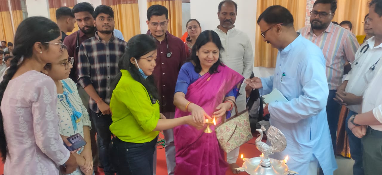 कार्यक्रम का शुभारंभ विद्यालय के प्रधानाचार्य श्री सुमंत कुमार, राष्ट्रीय स्वयंसेवक संघ के वरिष्ठ कार्यकर्ता श्री महादेव जी एवं उपस्थित चिकित्सकों द्वारा संयुक्त रूप से दीप प्रज्वलित कर किया गया। तत्पश्चात सभी चिकित्सकों को अंगवस्त्र एवं पुष्पगुच्छ भेंट कर सम्मानित किया गया।