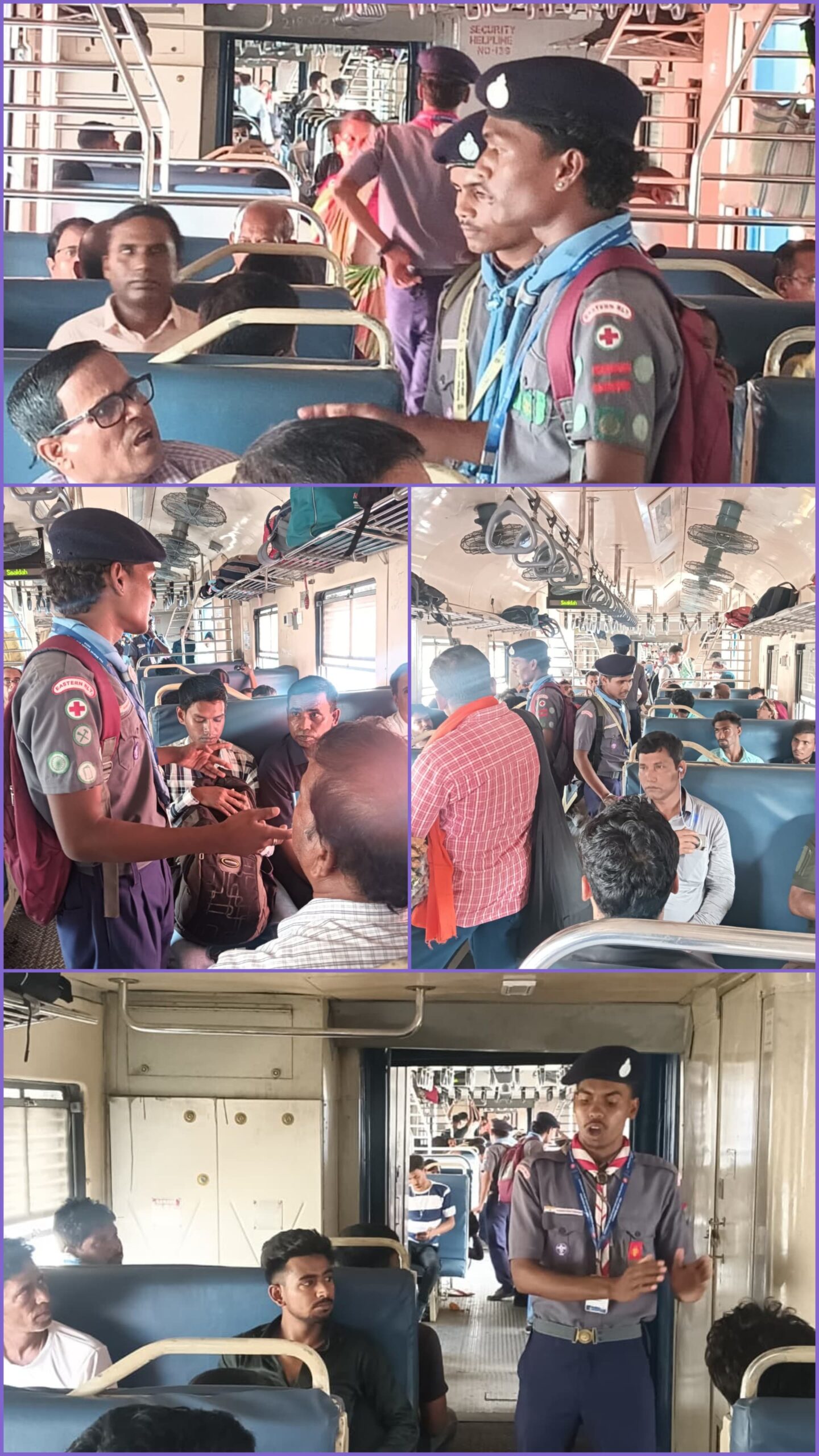 आसनसोल जिला में 25 उत्साही स्काउट्स, गाइड्स, रोवर्स एवं रेंजर्स ने ट्रेन संख्या 18184 बक्सर–टाटानगर एक्सप्रेस तथा 63518 आसनसोल–बर्धमान पैसेंजर में यात्रियों को स्वच्छता के प्रति जागरूक किया। कोच-कोच जाकर यात्रियों से अपील की गई कि कचरा निर्धारित डस्टबिन में डालें, प्लास्टिक के उपयोग से बचें तथा स्वच्छ वातावरण बनाए रखने में अपनी सक्रिय भागीदारी निभाएँ।